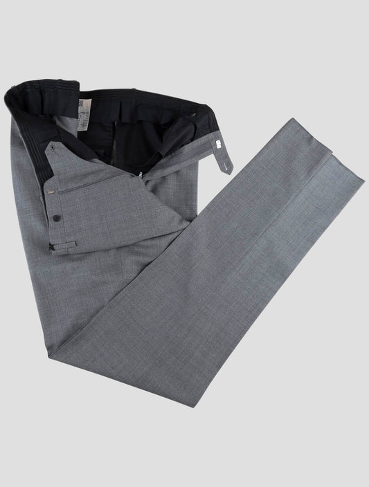 Kiton Gray Wool Dress Pants - Italian Handmade Flat Front Trousers