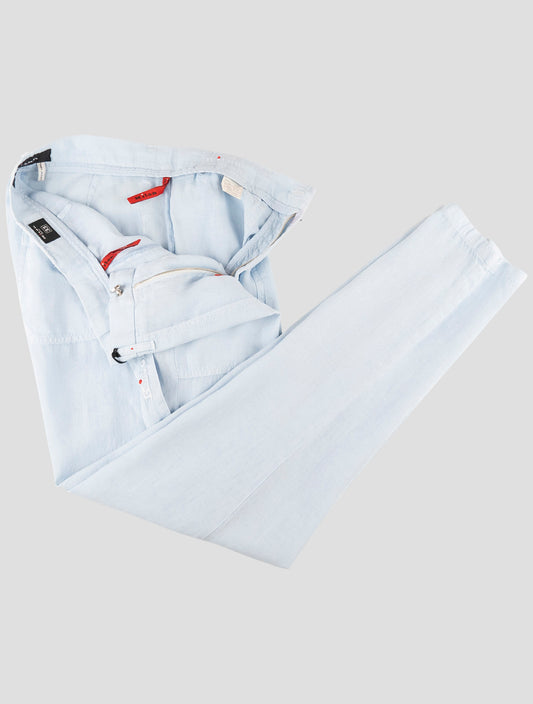 Kiton Light Blue Linen Elastane Pants - Italian Tailored Trousers