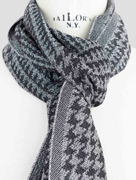 Kiton Premium Wool Scarf Black Gray Houndstooth - Made in Italy