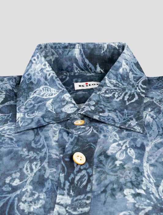 Kiton Blue Floral Cotton Shirt - Handmade Italian Regular Fit