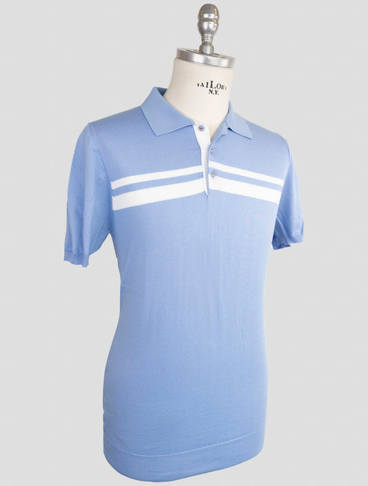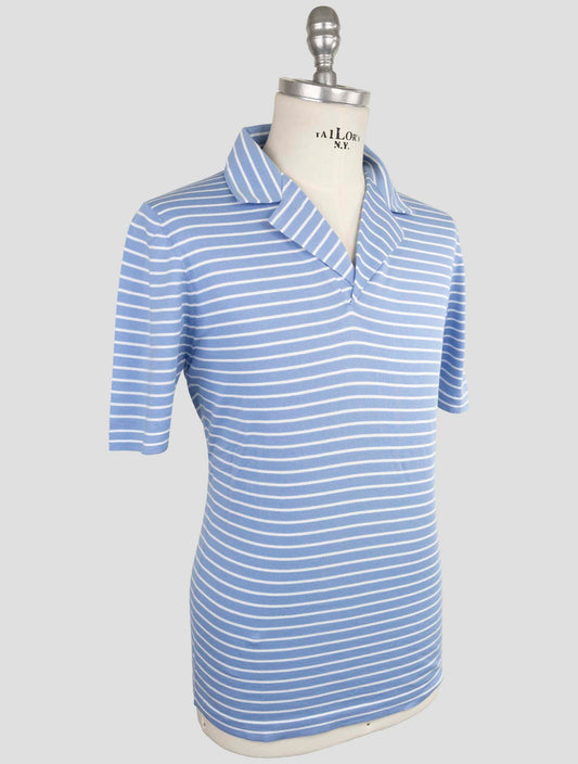 Kiton Premium Cotton Polo Light Blue White - Made in Italy