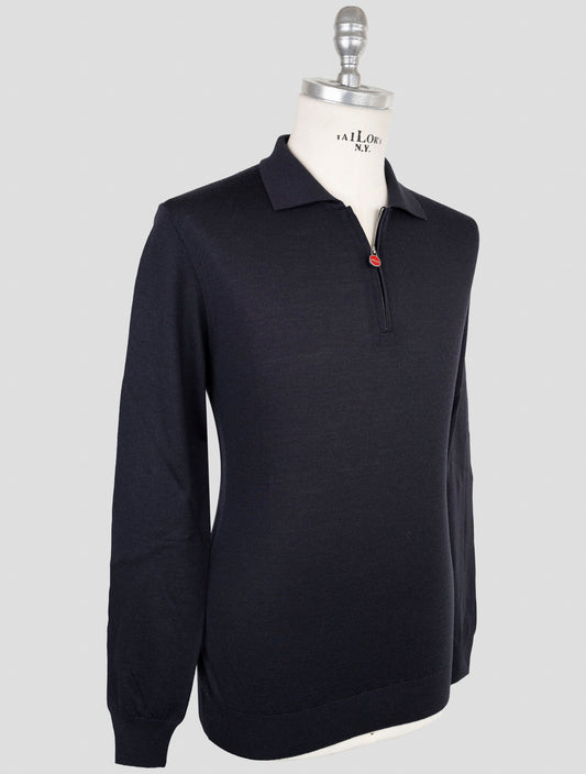 Kiton Premium Wool Half-Zip Polo Sweater - Blue Italian Menswear