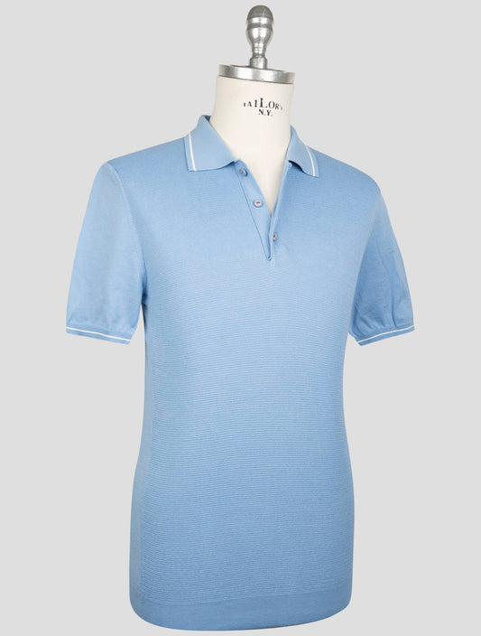 Kiton Premium Cotton Polo Shirt Light Blue Italian Made