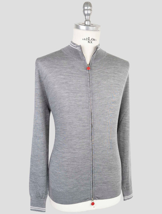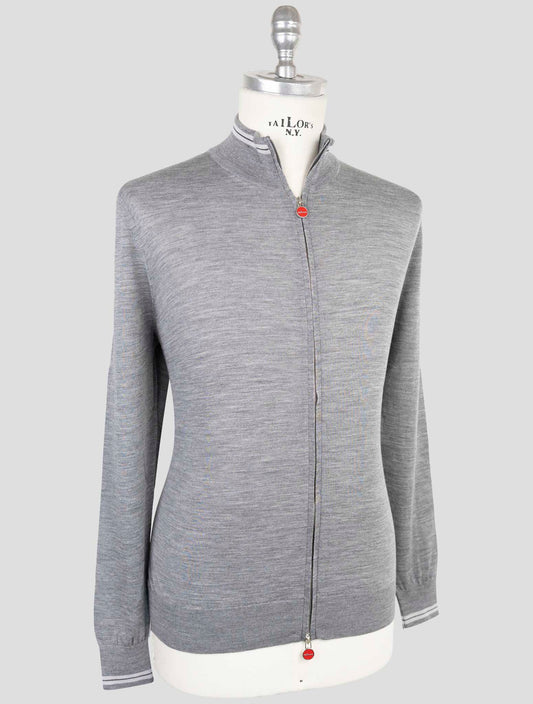 Kiton Gray Wool Full Zip Sweater - Diamante Blu Italian Luxury