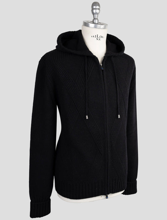 Kiton KNT Premium Black Cotton Hoodie Sweater - Italian Made