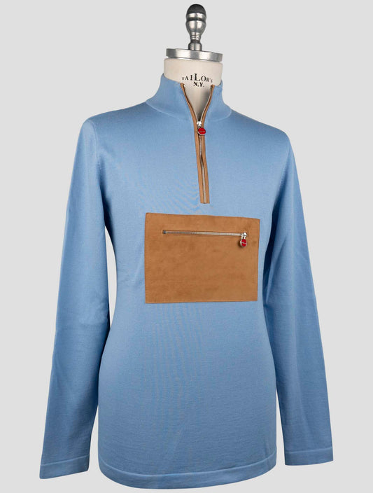 Kiton Premium Cotton Half-Zip Sweater Light Blue - Italian Made