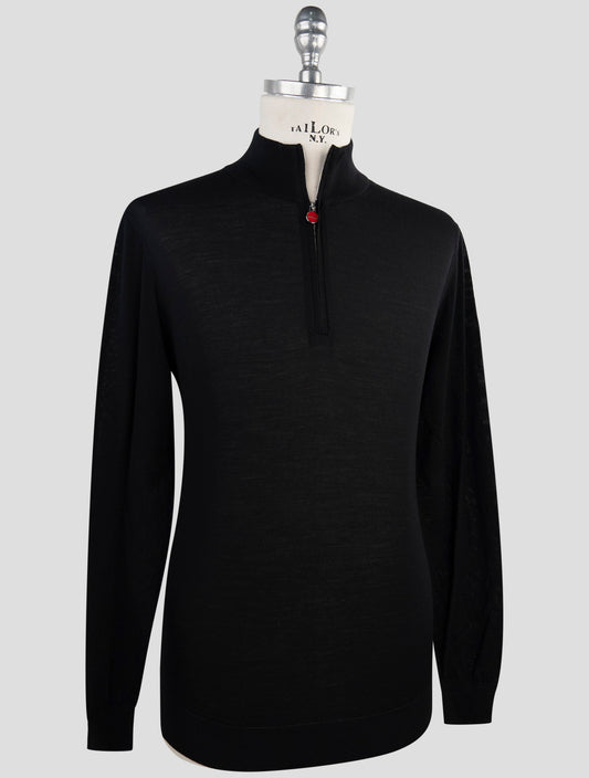 Kiton Black Wool Half Zip Sweater - Premium Italian Craftsmanship