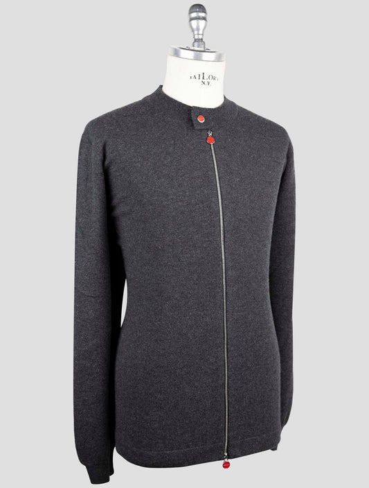 Kiton Premium Wool Full Zip Sweater - Dark Gray Italian Luxury