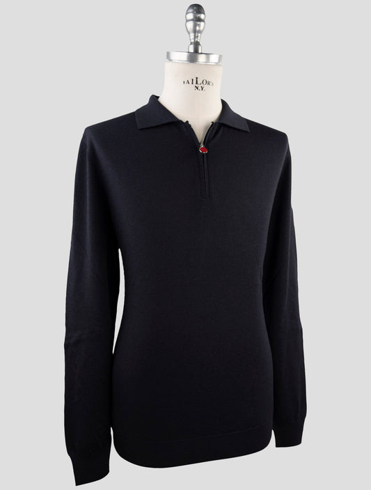 Kiton Premium Dark Blue Wool Half-Zip Polo Sweater - Italian