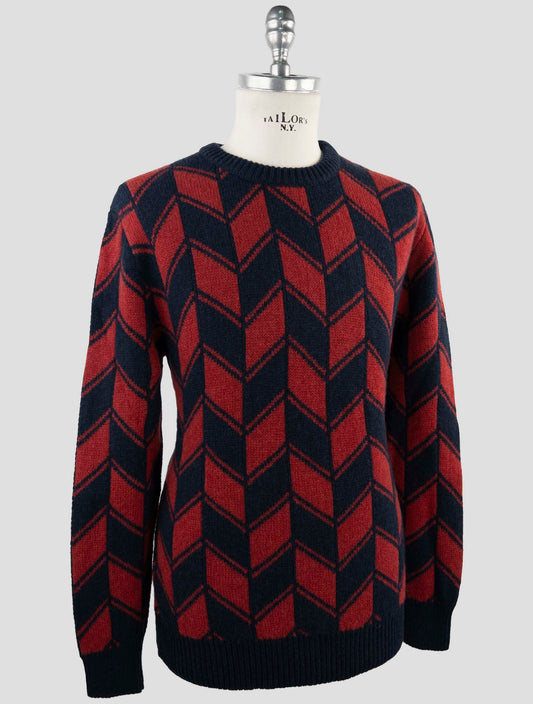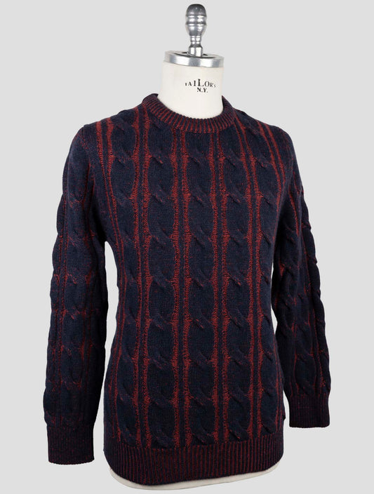 Kiton Premium Cashmere Crewneck Sweater Red Blue Textured