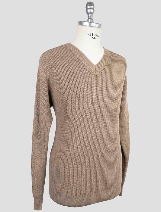 Коричневый кашемировый свитер с V-образным вырезом Kiton