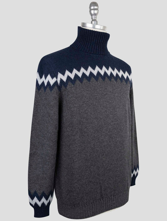 Кашемировый свитер-водолазка Kiton синего и серого цвета
