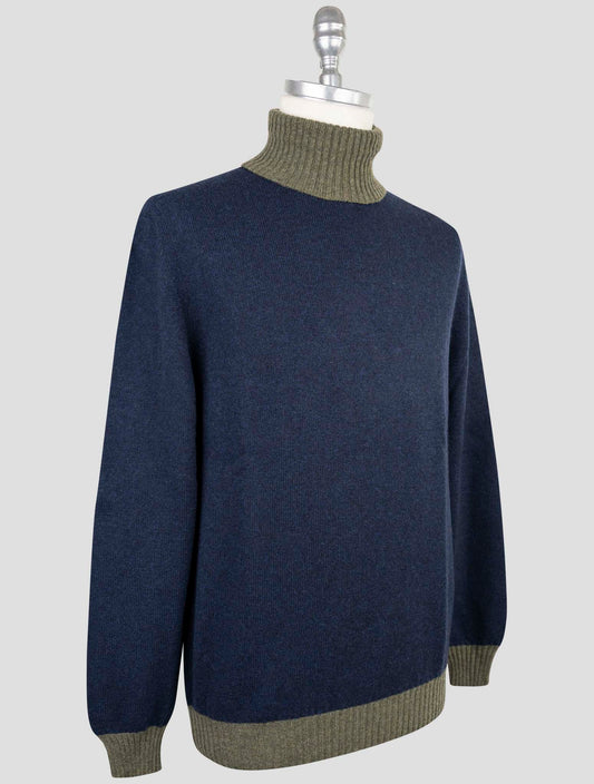 Свитер с воротником-стойкой Kiton из кашемира синего и зеленого цвета