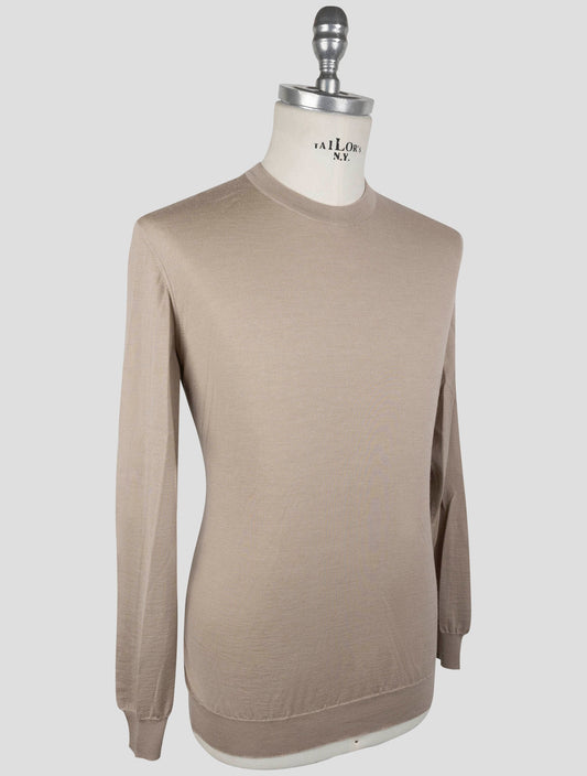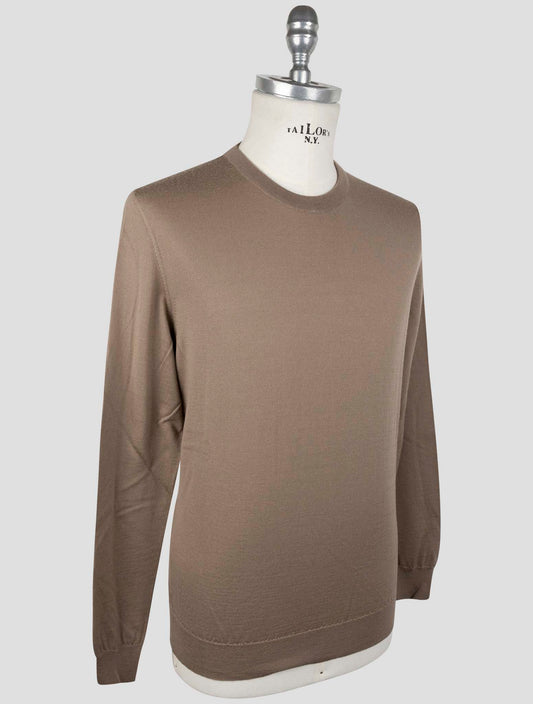 Коричневый шерстяной свитер Kiton с круглым вырезом