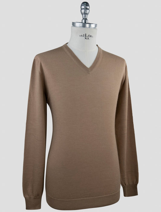 Свитер Kiton из кашемира и шелка коричневый V-образный вырез