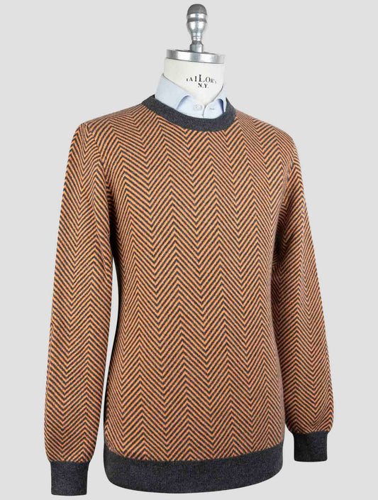Свитер Crewneck из кашемира Kiton серого и оранжевого цвета