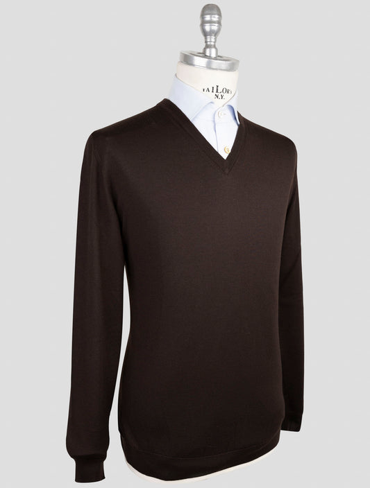 Kiton Dark Brown Cashmere Silk V-Neck Sweater - Italian Handmade