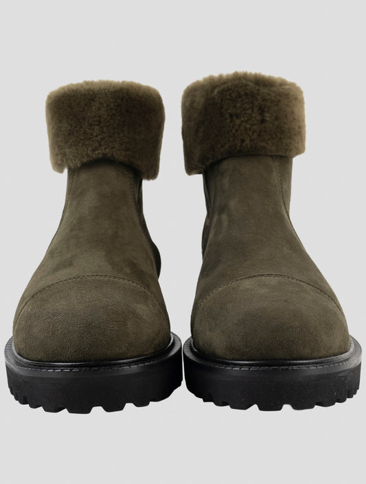 Kiton Premium Green Leather Shearling Boots - Women's Italian