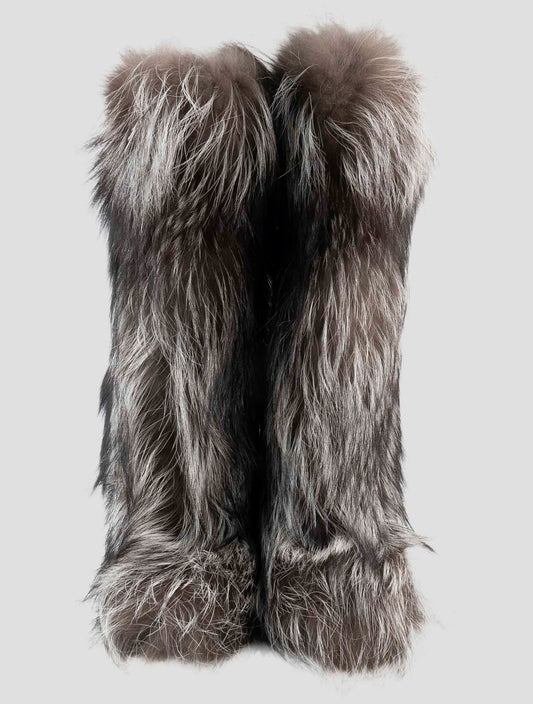 Kiton Women's Fox Fur Boots Brown White Italian Handmade