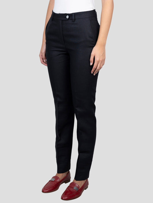 Kiton Women's Black Linen Pants - Italian Handmade Regular Fit