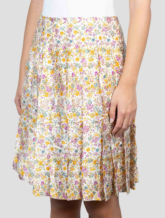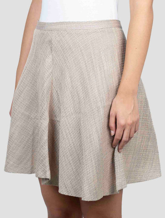 Kiton Beige Linen Viscose Floral Skirt - Italian Handmade