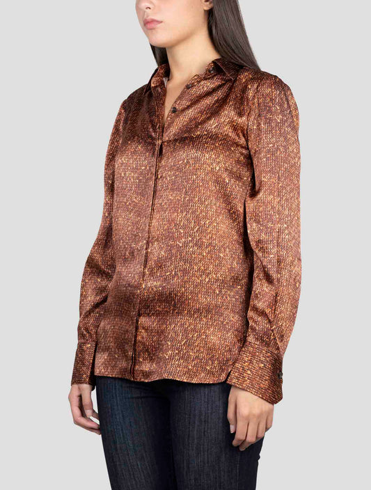 Kiton Brown Silk Shirt Women - Handmade Italian Luxury Blouse