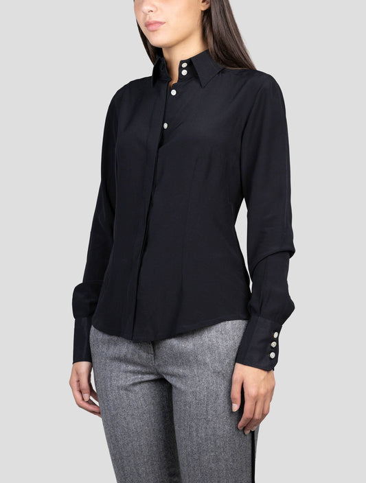 Kiton Black Silk Shirt Women - Handmade Italian Luxury Blouse