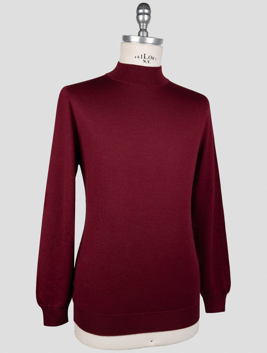 Kiton Luxury Cashmere Silk Half Neck Sweater Burgundy Italian