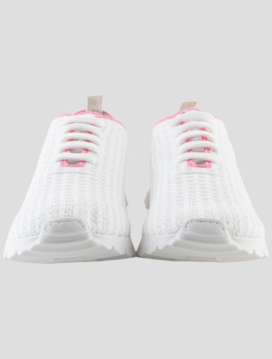 Kiton White Pink Cotton Sneakers Women - Handmade Italian