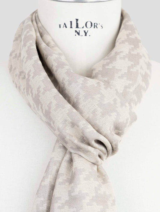 Kiton Handmade Wool Cashmere Scarf Beige Pied de Poule Pattern