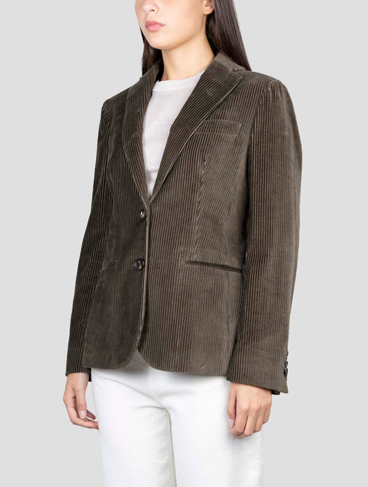 Kiton Brown Cotton Velvet Blazer - Handmade Italian Luxury Women's