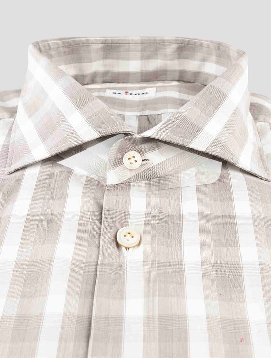 Kiton Premium Gray Cotton Dress Shirt - Handmade Italian Plaid