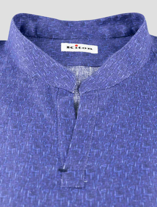 Kiton Blue Linen Shirt Men - Pure Italian Handmade Tailored Fit