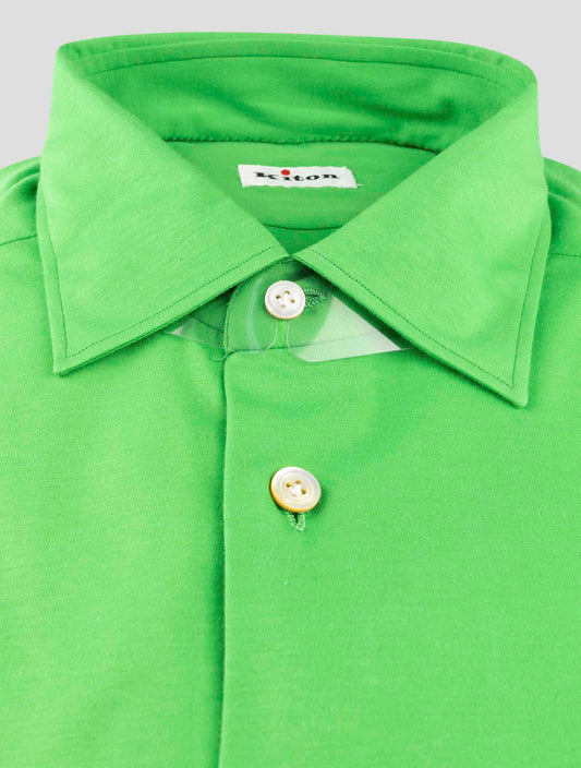 Kiton Green Cotton Dress Shirt - Premium Handmade Italian Regular