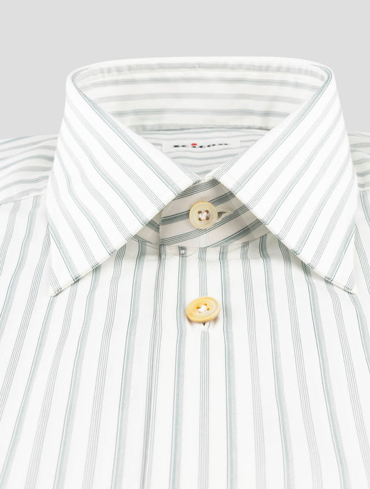 Kiton Handmade Cotton Shirt White Gray Striped Italian Regular Fit