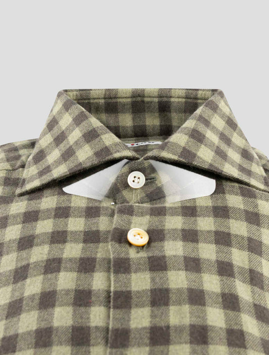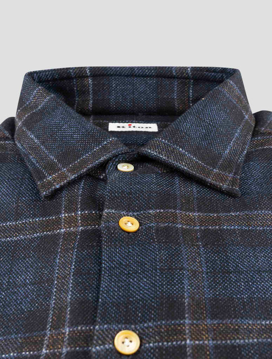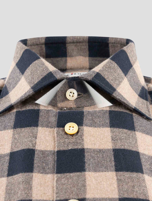 Kiton Premium Cotton Shirt Blue Brown Check - Italian Made